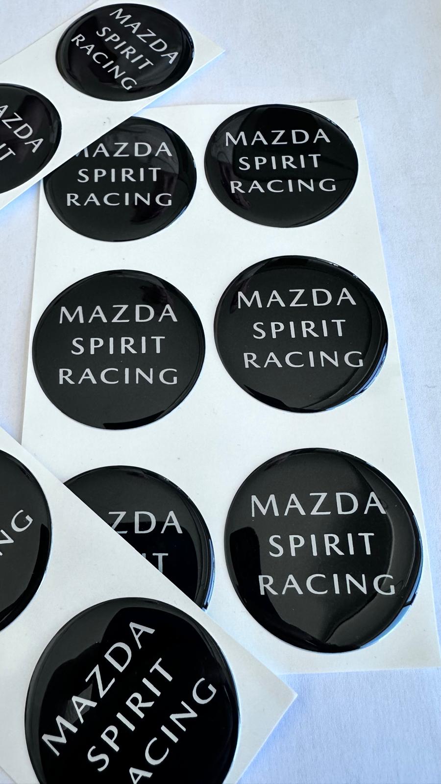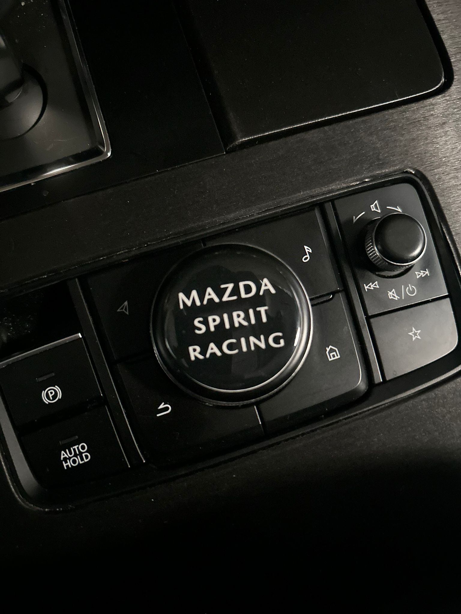 Unser hochwertiges 3D-Doming-Emblem mit spirit racing Schriftzug ist passgenau für den großen Drehregler auf der Mittelkonsole des Mazda CX-60 (und vergleichbare Modelle) gefertigt.